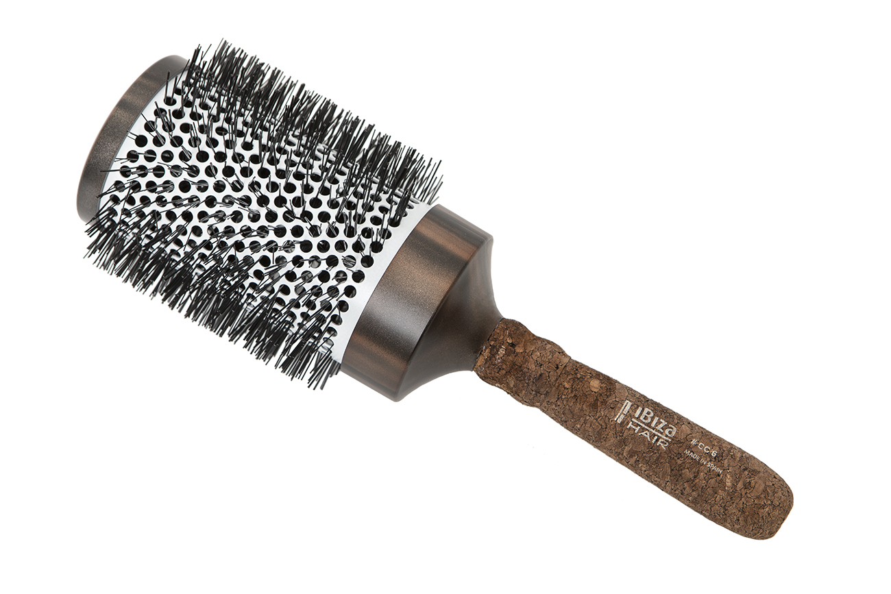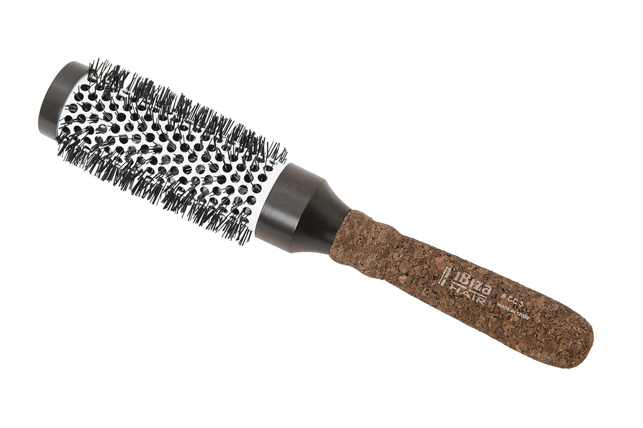 The all new CC series uses carbon fiber nylon bristles with a Mediterranean cork handle and ceramic barrel. A heat resistant, ionic brush that gives you effortless glide while eliminating frizz, fly aways and static electricity. The most ergonomic handle in a round brush ever. Made in Spain.