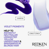 Redken Color Extend Blondage is an ashen colour-depositing purple shampoo and conditioner for blonde and highlighted hair. This system features key ingredients salicylic acid to strengthen and repair blonde hair from the core and pure violet (purple) pigments to remove unwanted brassiness and leave blonde hair colour cool and bright.